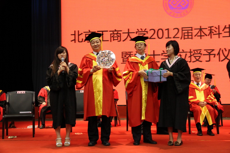 2012屆畢業生是一屆有著燦爛回憶的畢業生。在國慶60周年閱兵儀式的艱苦創業方陣中,他們用矯健的步伐展現著工商學子的昂揚志氣;在校慶60周年的慶典上,他們又用激情與汗水見證著工商春風化雨的歷史;而今天,在這惜別之季,他們為母校帶來了新的祝福與感動。來自各學院的學生代表,將他們精心挑選的,或者是親手設計的禮物贈送給了他們所在的學院和母校。一份份意義特殊的禮物,表達了他們對恩師和母校深深的感激、眷戀與不舍之情,也表達了對學校的美好祝福。