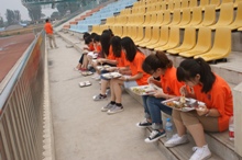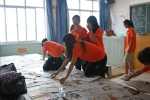 下午,實(shí)踐團(tuán)師生來(lái)到了同學(xué)們實(shí)踐期間生活學(xué)習(xí)的“主戰(zhàn)場(chǎng)”--教學(xué)樓。由于石樓中學(xué)的教學(xué)樓、宿舍樓還在建設(shè)之中,實(shí)踐團(tuán)的學(xué)生需要克服許多困難。兩間大教室,34張床板鋪在地上,這就是同學(xué)們的宿舍。條件雖然艱苦,卻沒(méi)有一個(gè)人抱怨。整理好床鋪,同學(xué)們馬上投入了緊張的備課,為接下來(lái)的實(shí)踐活動(dòng)積極準(zhǔn)備著。實(shí)踐第一天,同學(xué)們已經(jīng)培養(yǎng)起了責(zé)任心與信心,在討論中期待著2012年夏令營(yíng)的正式到來(lái)!