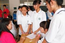 下午三點,社會實踐成員們?yōu)榱鶄€班級舉行了此次夏令營活動中的第一次班會。班會的主要內(nèi)容是制定班名、選取班歌、構(gòu)思班級口號等班級建設(shè)活動,從而提高班級凝聚力和培養(yǎng)學(xué)生的主人翁意識。經(jīng)過了兩個多小時的交流討論,六個班級的班名、班歌和班級口號順利誕生。當孩子們自豪地喊出班級口號,嘹亮又悅耳的班歌在教室中回蕩時,經(jīng)院社會實踐成員的臉上蕩漾出幸福而欣慰的微笑。