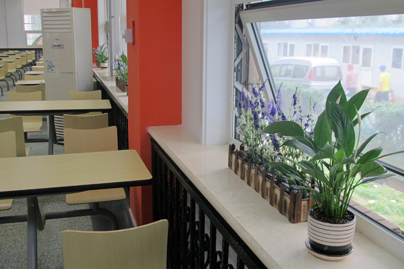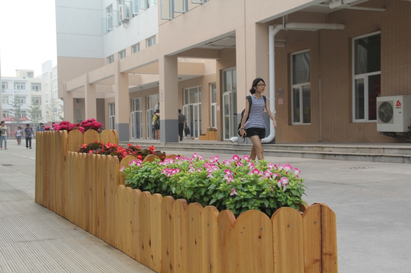 教一樓改造和屋頂防水保溫花園工程正在緊張施工,預計11月底竣工。中一樓和中二樓此前經過了改造,樓中間新布置了花壇,每樓的一層布置了鐵藝花籃,別有情趣。