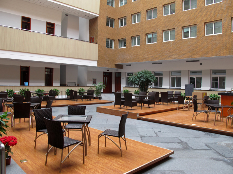 阜成路校區東區食堂經過裝修、改造,煥然一新。食堂外墻經過了清洗,門窗換了,還鋪設了新樓梯。以橙色、藍色分別為主色調的一、二層食堂,為大家營造了輕松明快的就餐環境。食堂三層師生活動中心目前還在裝修中,將來可用作學生、老師、離退休老干部開展活動,預計國慶節后能夠投入使用。