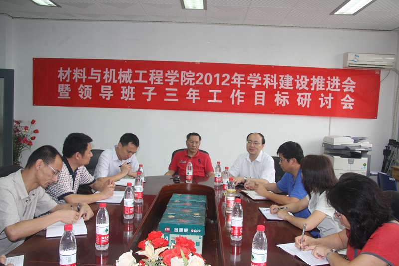 8月31日下午,材料與機械工程學(xué)院召開“2012年學(xué)科建設(shè)推進會暨領(lǐng)導(dǎo)班子三年工作目標研討會”。謝志華副校長應(yīng)邀出席并講話。材料與機械工程學(xué)院領(lǐng)導(dǎo)班子成員、系主任、教師代表參加會議。會議由院長黃志剛主持。