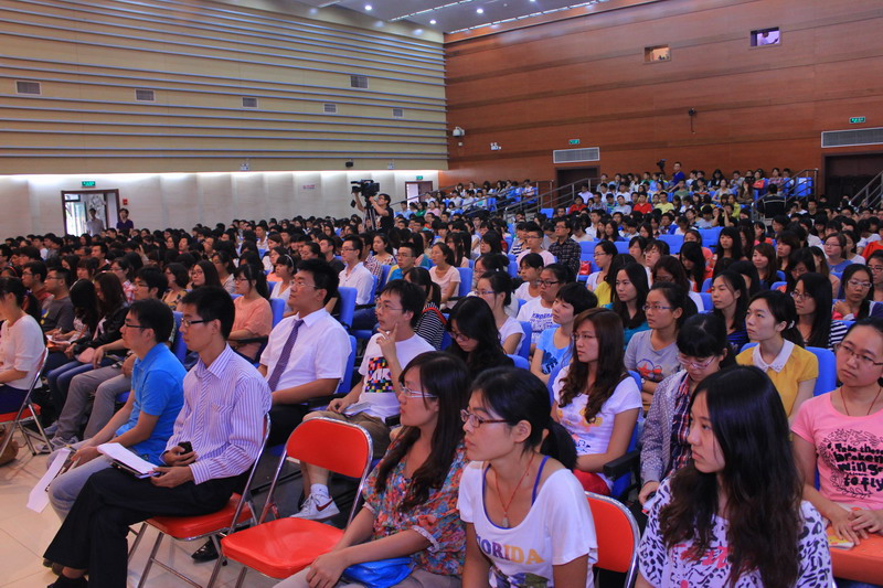 最后,譚向勇校長講話,他首先代表學校對2012級研究生的到來表示熱烈的歡迎,隨后介紹了學校的發展歷史、現實情況、未來規劃以及2012屆研究生畢業生在校期間的科研情況,他指出目前學校的各方面正在逐步地完善,學校將努力為學生提供舒適的學習生活環境,開拓國際留學的培養途徑,不斷提高研究生培養水平。接著,譚校長從兩個方面對研究生們提出十點希望:第一方面要做好學問,包括學會發現問題,多閱讀,常思考;勇于追求真理,大膽質疑,不要被專家的思想束縛住;努力擴大知識面,眼界要開闊,不要局限于本專業知識的學習;要提升基本的技能,包括邏輯、表達、寫作、數學、外語等方面的能力;要小題大做,找準學位論文研究的切入點。第二方面要學會做人,做一個高尚的有社會責任感的人,這是人類共同的標準;做一個踏實的人,不要眼高手低;做一個能合作的人,善于處理好各種人際關系,學會和不同的人打交道;做一個有修養的人,幽默風趣,有生活品味;做一個身心健康的人,要有強健身體和健康心理。