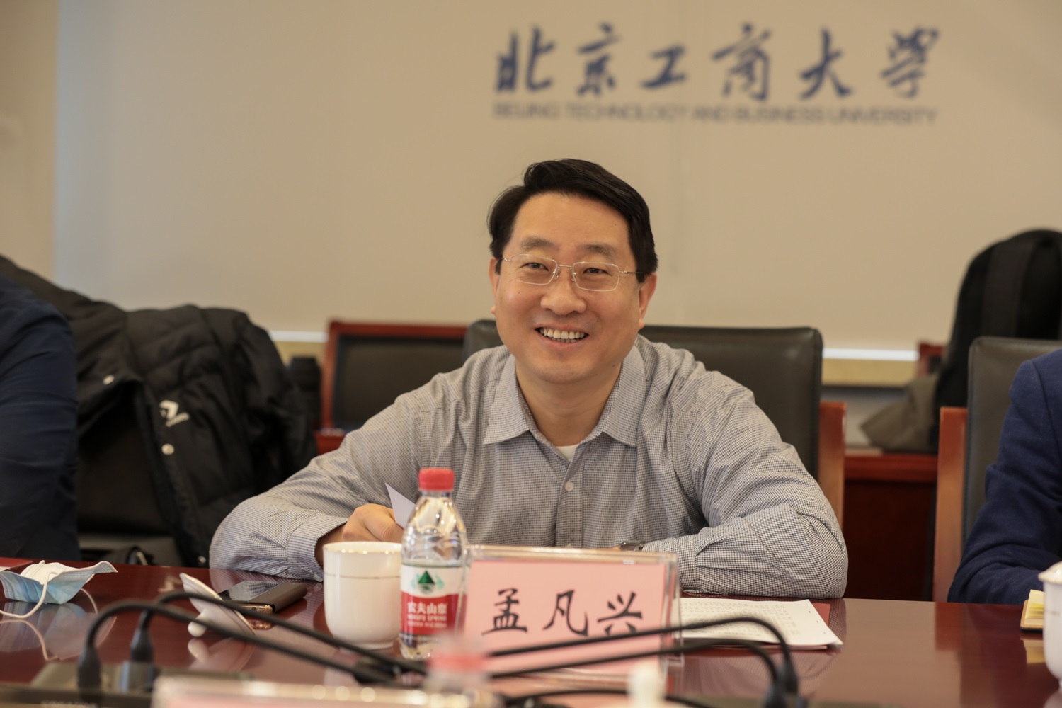 龔六堂代表學(xué)校對孟凡興副主席一行的到來表示熱烈歡迎,對北京市科協(xié)給予學(xué)校長期以來的關(guān)懷與支持表示感謝。他介紹了學(xué)校科研院成立的背景、近期學(xué)校科研成果、“十四五”期間科研工作重點(diǎn)等。在北京市科協(xié)的指導(dǎo)下,學(xué)校科協(xié)工作穩(wěn)步開展,取得一定成績,也存在一些短板,希望與會(huì)領(lǐng)導(dǎo)對學(xué)校下一步如何開展好科協(xié)工作、引領(lǐng)行業(yè)創(chuàng)新發(fā)展多提要求、做指導(dǎo)。學(xué)校目前正處于建設(shè)高水平研究型大學(xué)的關(guān)鍵時(shí)期,學(xué)校科研工作將立足商科、輕工和食品特色,以獲批三個(gè)博士授權(quán)點(diǎn)為契機(jī),以科研平臺(tái)建設(shè)為抓手,以學(xué)科交叉結(jié)合為切入點(diǎn),充分發(fā)揮特色優(yōu)勢,凝聚科研方向,更好地服務(wù)首都“四個(gè)中心”、“兩區(qū)”、“三平臺(tái)”建設(shè),高精尖產(chǎn)業(yè)發(fā)展需求和經(jīng)濟(jì)社會(huì)發(fā)展。