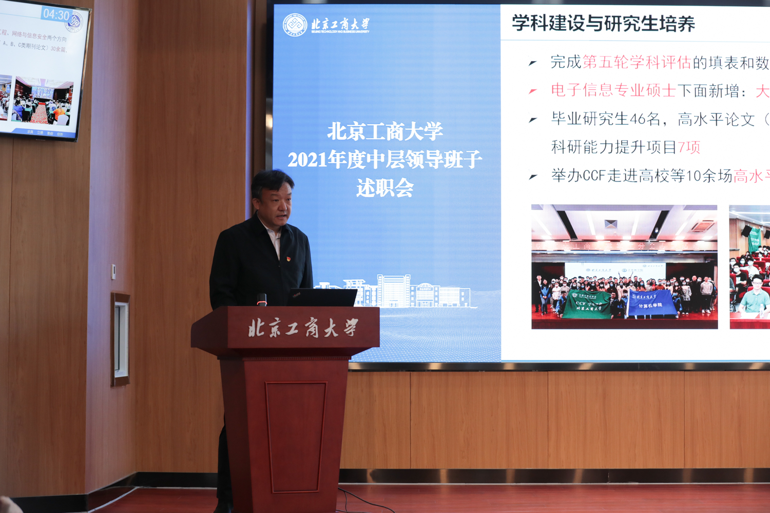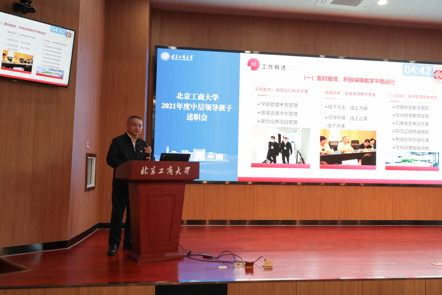 1月17日,學校在阜成路校區(qū)召開2021年度中層領導班子述職會。校領導黃先開、孫寶國、王偉、李中奇、歐陽媛、鄭文紅、徐丹丹、劉敏華、左敏出席會議。全體黨政管理部門、群團組織、教輔單位負責人和教學單位行政負責人現(xiàn)場參會。會議由學校黨委副書記王偉主持。