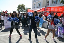 10日當天10點半,各社團開始陸續(xù)展現自己的風采:別具一格的服裝、火爆激情的舞蹈,震撼人心的音樂。隨著中午放學鈴聲的響起,招新活動達到了高潮,越來越多的同學來到百團招新現場。“這是我見過最宏大,最正式的一次招新活動。”接受采訪的某社長說道。由于招新的社團種類和數目繁多,同學們都詳細地詢問著各社團的情況,精心挑選自己喜歡的社團,希望通過積極參與社團活動豐富自己的大學生活。老社員們則不遺余力的為自己的社團吶喊助威,為新生們耐心的講解介紹。正午艷陽高照,但招新現場的氣氛比陽光還要火熱。同學們高漲的參與熱情,各個社團熱心的積極組織,使百團招新活動熱鬧有序地進行著。活動結束后,社團部的工作人員和各個社長還對活動場地進行了清掃工作。