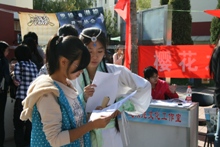 10月10日,2012-2013學年度北京工商大學百團招新在良鄉(xiāng)校區(qū)龍月廣場舉行。良鄉(xiāng)校區(qū)的96個學生社團參加了本次招新。