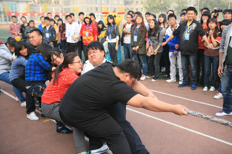 拔河比賽現場賽況激烈。藝傳學院傳媒122班的運動員任一湃說:“大家的積極性很高,都是自愿主動的報名參加比賽,而且非常有信心!”哨聲響起,比賽開始,10人的小團隊,男女隊員雙手緊握繩子,在“一二、一二”的口號下,將力量匯聚,將心靈靠攏,拼盡全力往身后拉,手勒紅了,磨破了,嗓子叫疼了,喊啞了,可是沒有一個人懈怠,一名隊員甚至還幽默的說“自己應該再胖點!”