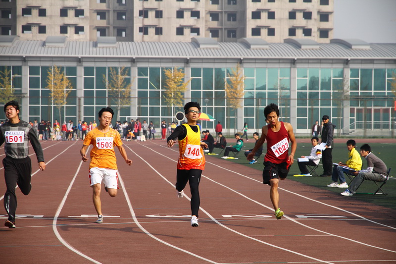 百米賽跑一直是誕生飛人之戰,選手如獵豹般的矯捷、飛鳥般的輕盈使賽事極富觀賞性。飛人不是一夜煉成的,賽場上翱翔的雄鷹亦是經歷無數次磨練。藝傳學院的金澤同學于小組賽中拔得頭籌,他遙遙領先的背后是平時在足球場上揮汗如雨的練習。“足球中積極的跑動鍛煉了我的爆發力,增強了我的體力。我百米跑的秘訣是功在平時。”金澤同學大方地分享他的經驗。