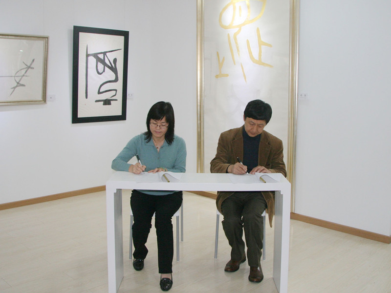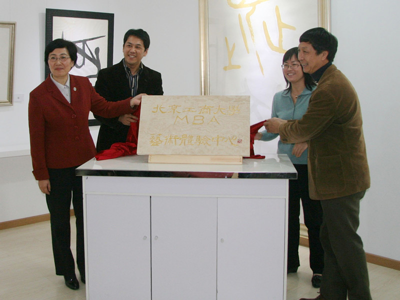 學校商學院教授龐毅宣布首次文化沙龍正式啟動。商學院黨總支書記歐陽愛平代表北京工商大學MBA教育中心與魏曉寰先生簽署了合作協議。嘉賓們共同為魏曉寰藝術文化研究交流中心暨北京工商大學MBA藝術體驗中心揭牌。