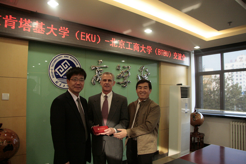 國際交流處處長何明珂、商學(xué)院院長王國順主持了歡迎儀式。雙方就學(xué)生交流和教師互訪等方面進(jìn)行了探討,并達(dá)成了進(jìn)一步合作的意向。東肯塔基大學(xué)Fenton教授對我校組織安排的各項活動表示感謝,非常期待能夠再次來訪,并熱情歡迎我校師生到東肯塔基大學(xué)進(jìn)行訪問。最后,東肯塔基大學(xué)(EKU)師生在我院教師與學(xué)生的陪同下參觀了我校圖書館以及經(jīng)濟(jì)管理實驗室。