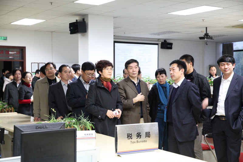 隨后,考察團一行在張德玉副書記的帶領下先后走訪了我校文科實踐中心(國家實踐教學示范中心)、工科實踐中心、圖書館、校史館和藝術樓。相關部門的負責同志認真向高校領導們介紹了我校在開展實踐教學、校史文化建設、提高學生綜合素質和實踐應用能力等方面所做的工作。高校領導們饒有興致地觀看了我校的模擬法庭、證券模擬大廳、校史館、新聞演播大廳等場所,觀看了學生繪畫作品和各種獨具創意的燈具、椅子等工業設計作品。