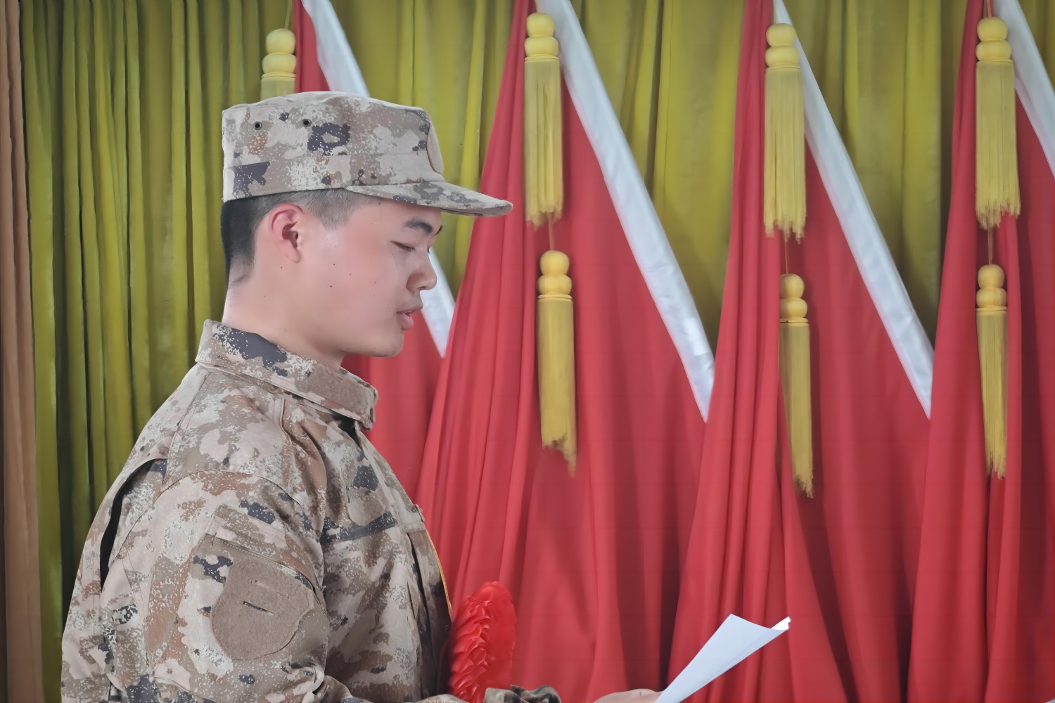 在歡送新兵環節,“戰友協會”會長張盟雨對入伍新兵點名,新兵以鏗鏘有力的答“到”聲,展現著他們的昂揚風貌。之后,全體新兵進行莊嚴宣誓,相關學院輔導員為入伍新兵佩戴綬帶并頒發紀念品。