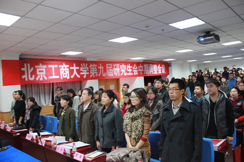 會議在莊嚴的國歌聲中開幕。呂良在會上致辭。他充分肯定了過去一年研究生會在科技、文化、體育、社會實踐和志愿服務等方面取得的成績,希望研會繼續加強內部組織建設,不斷增進與學院之間的交流活動,以科研學術活動為主題,通過“傳、幫、帶”的形式,與學校阜成路校區的本科生、留學生一起,擴大活動覆蓋面和影響范圍。