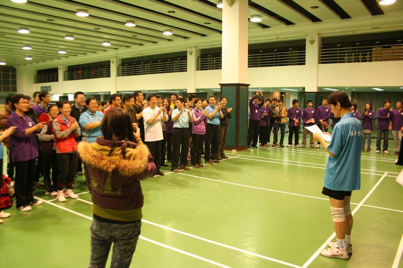 上午9時,副校長方德英、校工會常務副主席田宏為本次比賽開球,并宣布比賽開幕。我校教工乒乓球、羽毛球團體及單項比賽是傳統賽事,本屆團體比賽為第六屆。組織有序,競爭激烈是本次比賽的突出特點,許多場次直到決勝局才分出伯仲。歷經九小時,兩個項目近200余場爭奪,選手們揮汗如雨,奮力拼博,拉拉隊吶喊助威,氣氛熱烈。下午6時比賽全部結束,選手們交流了球技,增進了友誼。