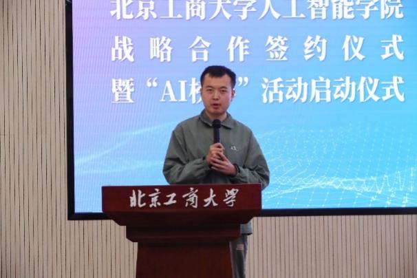 “AI 榜樣”系列活動啟動儀式舉行,活動由人工智能學院副院長李寶河主持。人工智能學院副院長孫曉榮對“AI榜樣”系列活動進行介紹。她講到,為鼓勵先進典型,樹立青春榜樣,清華大學自動化系和北京工商大學人工智能學院“智動”學生發展中心開展“AI榜樣”主題系列活動,旨在廣泛宣傳推廣兩校大學生中優秀學子的先進事跡,掀起“身邊人講述身邊事,身邊事感染身邊人”的互相學習熱潮。“AI榜樣”系列活動將定期舉行,采用自主申報和院系推薦相結合的方式,遴選出每一期的演講嘉賓,通過他們的事跡分享,樹立優秀學生的榜樣,用“明星”的力量、成功者的事跡,給所有學生提供一個奮斗的“參照系”,激發同學們追求上進的積極性。通過系列活動的舉辦,培養具有優秀素質的社會人才,進一步推動優良學風建設。
