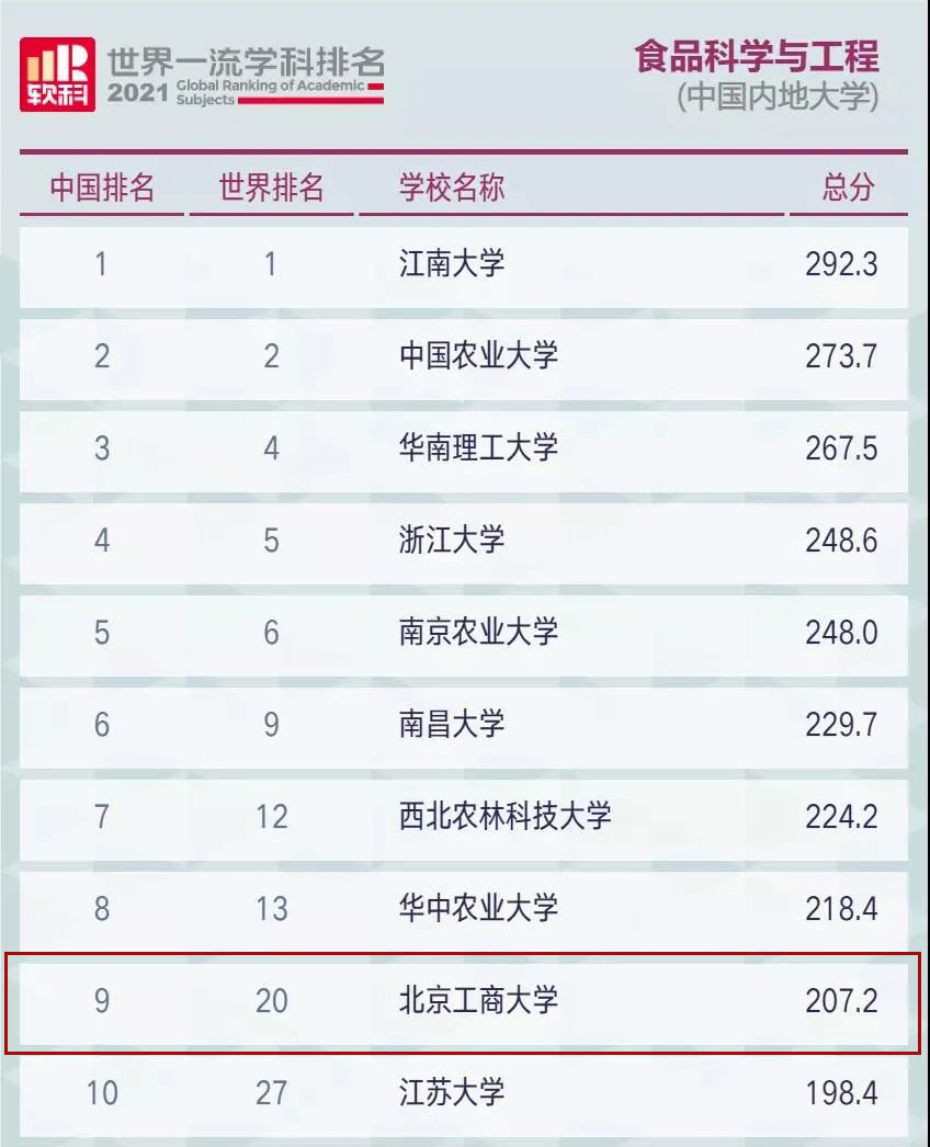 5月26日,高等教育評價專業機構軟科正式發布2021“軟科世界一流學科排名”(ShanghaiRanking's Global Ranking of Academic Subjects),我校食品科學與工程學科由2020年世界第48位上升至世界第20位,全國第9位。