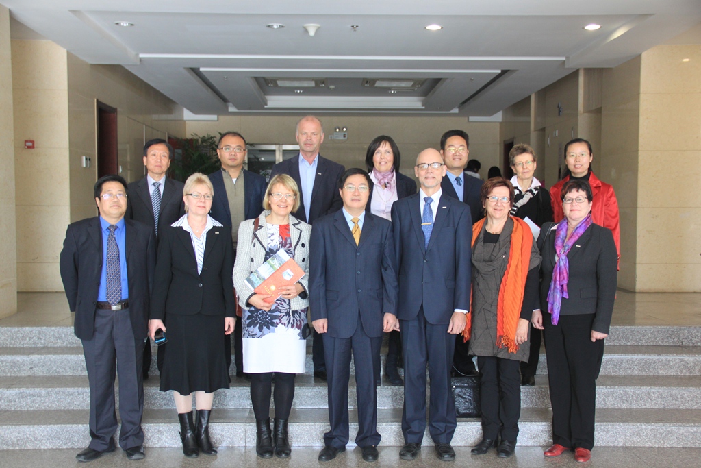 芬蘭哈姆理工大學企業家與商務教育研究中心主任烏拉•巴德(Ulla Bard)、科技教育研究中心教育部主任特加•恩格邦(Tuija Engbom)、福利教育研究中心主任漢娜•馬甲拉(Hanna Maijala)、生物經濟教育研究中心主任艾瑞•米克拉(Ari Mikkola)、職業教師培訓部主任塞佳•卡迪倫(Seija Mahlamäki-Kultanen)、研究生學位項目中心主任荷倫娜•圖倫尼(Helena Turunen)、國際部主任瑪麗•瑞克萊(Marja Räikkönen)隨同來訪。我校國際交流與合作處處長何明珂、研究生部主任楊德勇、教育研究中心主任施楓、經濟學院院長李寶仁、國際交流與合作處副處長劉影、商學院副院長楊浩雄參加了會談。
