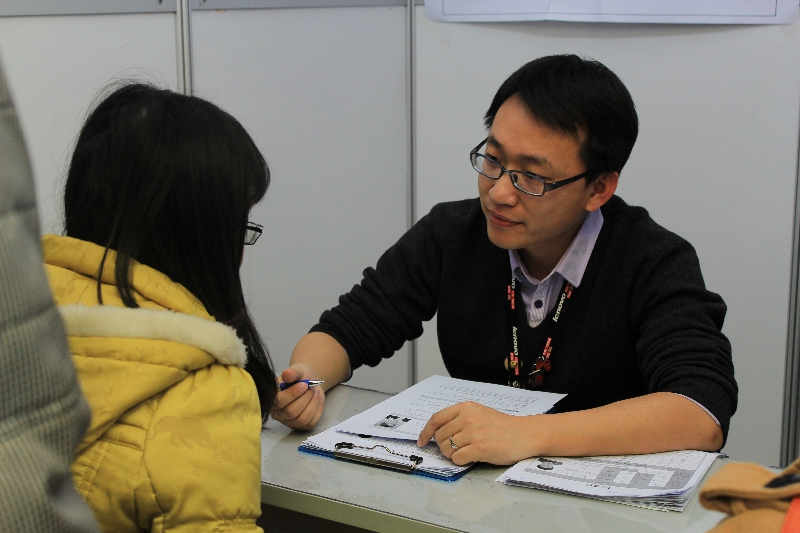 僅僅半個小時,很多熱門單位,如外交部機(jī)關(guān)及駐外機(jī)構(gòu)服務(wù)局、全國公民身份證號碼查詢服務(wù)中心、防災(zāi)科技學(xué)院等的展臺前就排起了長龍。企業(yè)招聘人員在接受我校應(yīng)屆畢業(yè)生簡歷的同時,會針對求職者的求職意向和個人簡歷提出一些問題,如詢問畢業(yè)生的期望月薪及個人優(yōu)勢等,看似隨機(jī)問答,實則考驗著學(xué)生的應(yīng)變能力和表達(dá)能力等。部分畢業(yè)生表示愿意嘗試不同的專業(yè)領(lǐng)域的工作。而企業(yè)本身的實力、資質(zhì)、發(fā)展?jié)摿Γ约澳芊駷榍舐氄咛峁V闊的個人發(fā)展空間,則是很多同學(xué)選擇哪家單位的重要因素。