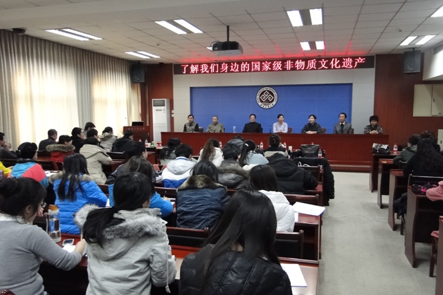 活動現場,徐曉輝為大家介紹了非物質文化遺產的概念以及傳承保護工作狀況,與物質文化遺產相比,非遺的保護傳承具有其特殊性。作為保護單位,對非物質文化遺產的記錄、建檔,傳承場所的建設維護,以及幫助傳承人開展授徒、傳藝、交流等活動都負有責任。他希望同學們都能積極關心和參與非遺保護工作,通過關注非遺網站、微博、博物館形式努力促成多元化的非遺保護保障機制,為非物質文化遺產的保護獻出一份力量。
