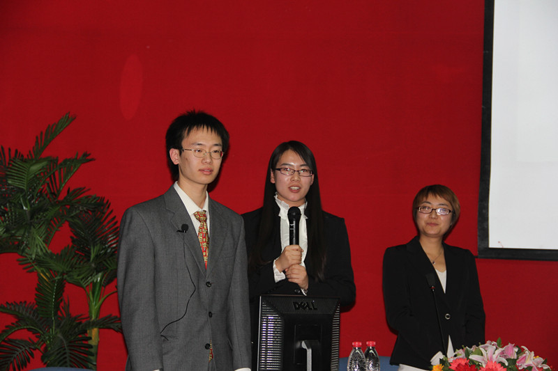 答辯當(dāng)天,注會(huì)102班的三名代表身著正裝,以班歌開始了班級(jí)展示。接下來,他們以視頻的形式向大家展示了班級(jí)建設(shè)的具體情況。視頻從思想建設(shè)、學(xué)習(xí)爭先、特色制度、工作貢獻(xiàn)、繽紛生活、璀璨成果、寄語展望等七方面全面展現(xiàn)了班級(jí)建設(shè)情況,并重點(diǎn)介紹了本班在思想、黨團(tuán)建設(shè)中的優(yōu)秀成果,以及緊跟十八大腳步,學(xué)習(xí)十八大精神和參與“首都百萬師生微黨課”的情況。視頻結(jié)束之后,現(xiàn)場專家和評(píng)委對(duì)班級(jí)展示進(jìn)行提問,針對(duì)注會(huì)專業(yè)的特點(diǎn)以及班級(jí)互幫互助的學(xué)風(fēng)建設(shè)提出了問題。