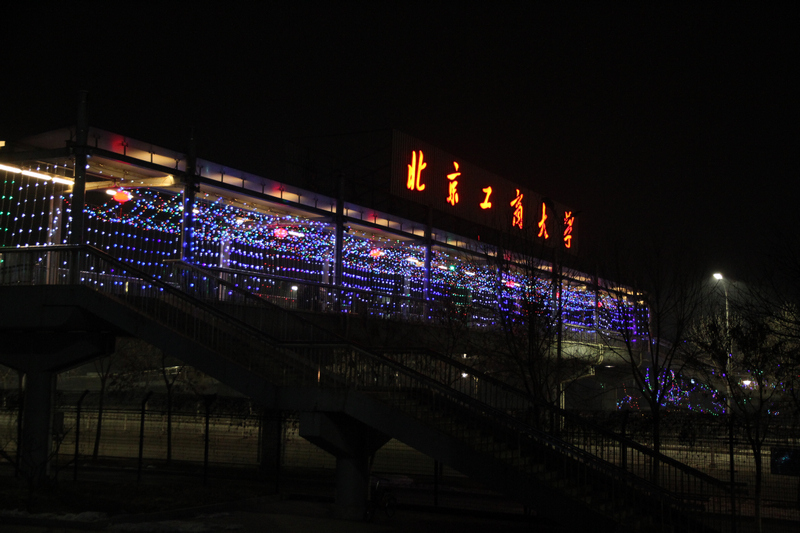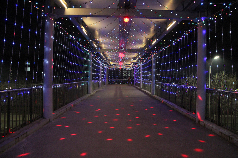 新年將至,校園里到處洋溢著歡樂喜慶的節日氣氛。樹上閃爍著五顏六色的彩燈,天橋上裝扮的彩燈和燈籠顯得格外喜慶、溫馨,“歡度新年”的紅色橫幅在學生活動中心門前鋪開,文體館前懸掛著的“2013”彩燈字樣絢麗奪目。