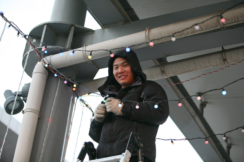 后勤管理處的張春富被問到2012年最快樂的事情的時候,笑了笑,用洪亮的聲音說,“是工作吧,能夠幫學校師生營造良好的生活環境,就是快樂。”談到最幸福的事情,他說道:“也是工作,工作雖忙,但讓我覺得我還有價值,能為師生服務,這樣我就很幸福了。”張春富1979年來到北工商,今年已是第33個年頭。他每天的工作是負責維修學校的水、電、氣、暖,“一旦學生、老師打電話說有了故障,我們就要第一時間到現場維修,學校面積大,樓也多,走的路也多,但是這么多年,學校師生高興了,我們也就高興了。”