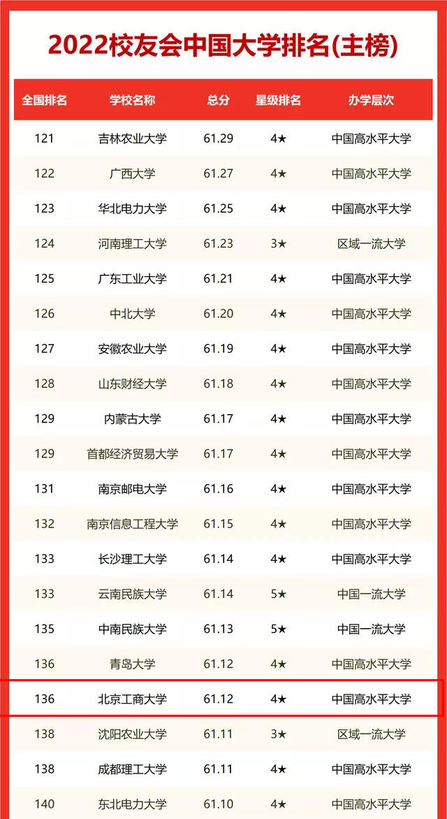 1月25日,全國第三方大學評價機構艾瑞深校友會網正式發布《2022校友會中國大學排名—高考志愿填報指南》,連續第20年發布校友會中國大學排名,我校辦學層次被認定為中國高水平大學,位列第136位,較去年上升13位。