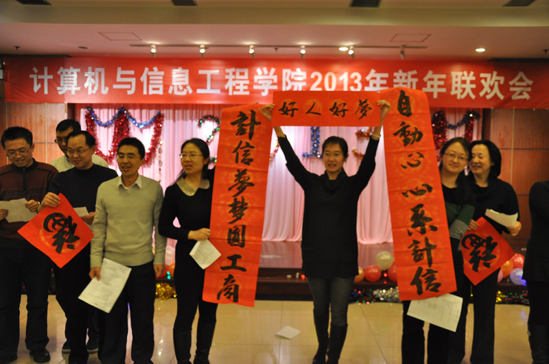 伴隨著方德英副校長對大家的祝福,精彩的文藝節(jié)目拉開了序幕。歌曲《外婆的澎湖灣》、《東方之珠》、《一剪梅》優(yōu)美動人;《甩蔥舞》頗具特色,活力四射;手風琴獨奏技藝高超;集春聯(lián)、相聲于一體的《好人好夢》展示了計信教師們的創(chuàng)意和才華;蔡強的《LOVE STORY》、
