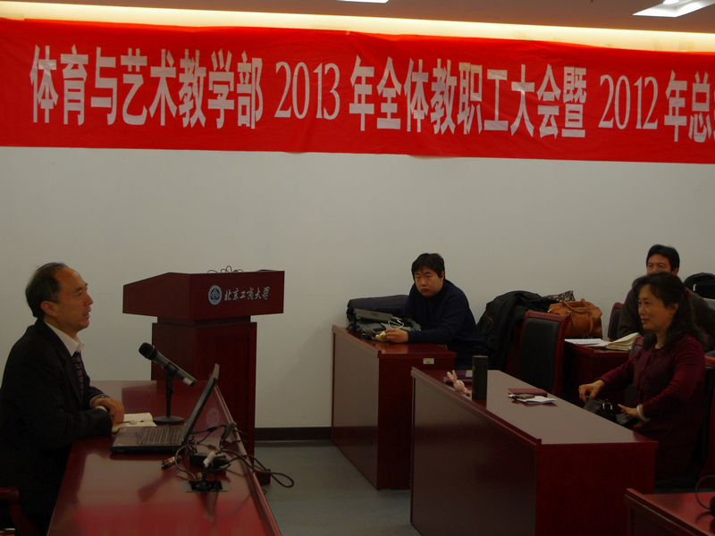 1月16日上午,體育與藝術教學部全體教職工歡聚一堂,召開2012年工作總結表彰會。校黨委副書記盧思鋒出席會議。