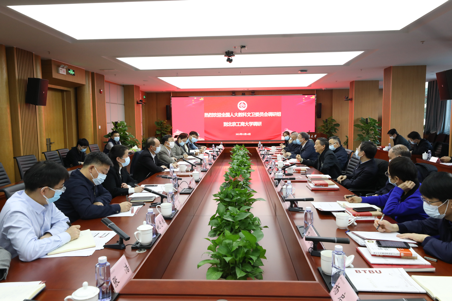 黃先開代表學校對吳恒副主任委員一行的到來表示熱烈歡迎,對全國人大教科文衛委員會、科技部、中國科協對北京工商大學的厚愛與關心表示衷心感謝!他表示,北京工商大學歷來重視科普工作,近年來結合自身學科優勢開展了形式多樣的科普活動,希望與會領導對學校下一步如何開展好科普工作、引領行業發展創新多提要求、做指導,學校將積極配合全國人大教科文衛委員會做好相關調研。