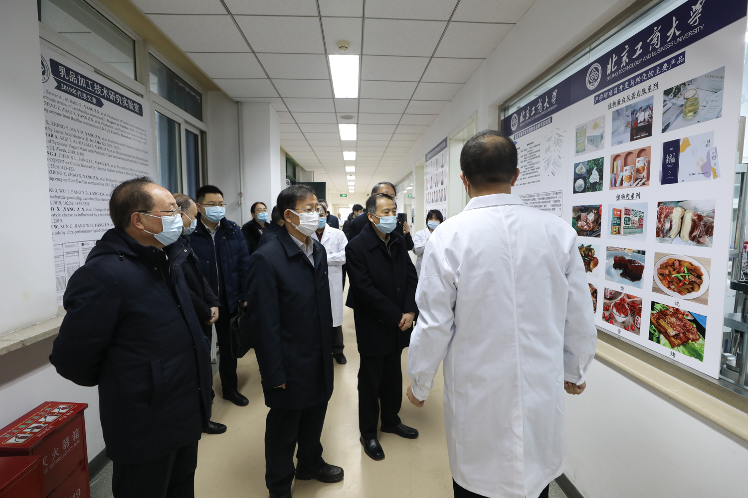 吳恒副主任委員一行深入學校乳品科學技術實驗室、蛋白資源開發與營養食品研究實驗室、食用香精實驗室、功能性食品配料與營養研究實驗室、植物資源研究開發北京市重點實驗室進行實地考察和參觀,認真聽取了實驗室相關負責人的介紹,對學校積極發揮自身特色和優勢,推進科技創新,推動成果轉化,服務國家建設和行業需求所取得的成績表示肯定。學校黨委書記黃先開、校長孫寶國和相關部門負責人陪同調研。