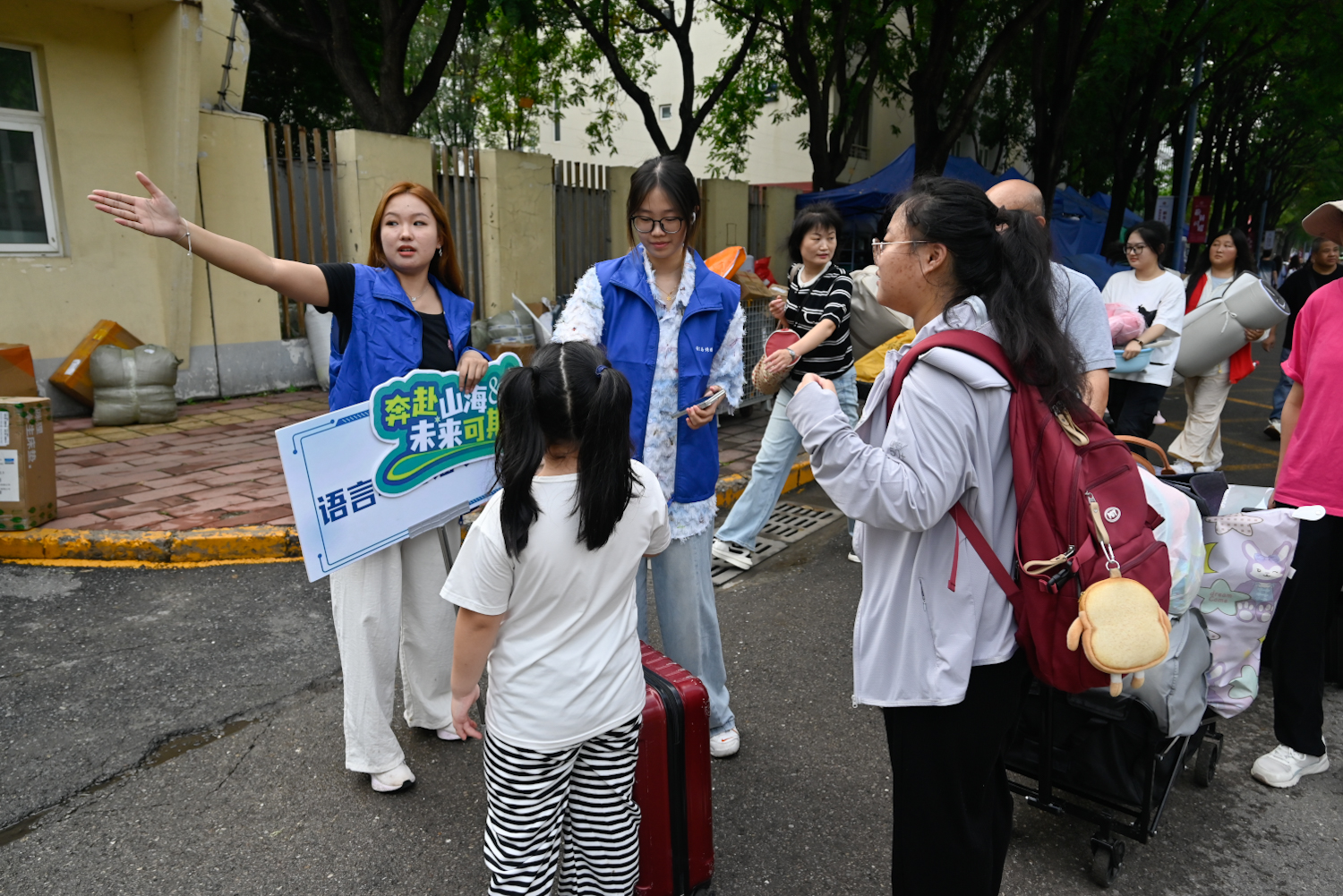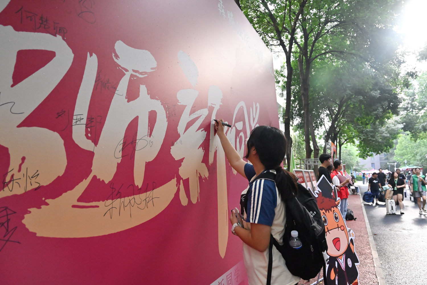 語言與傳播學院合理規劃布置迎新場地,優化報到流程,在家長臨時休息區提供防暑防蟲物資,周到暖心,潤物無聲。學院發揮專業特長,在特色打卡拍照區實時采訪,報到新生及家長動態,定格青春瞬間。