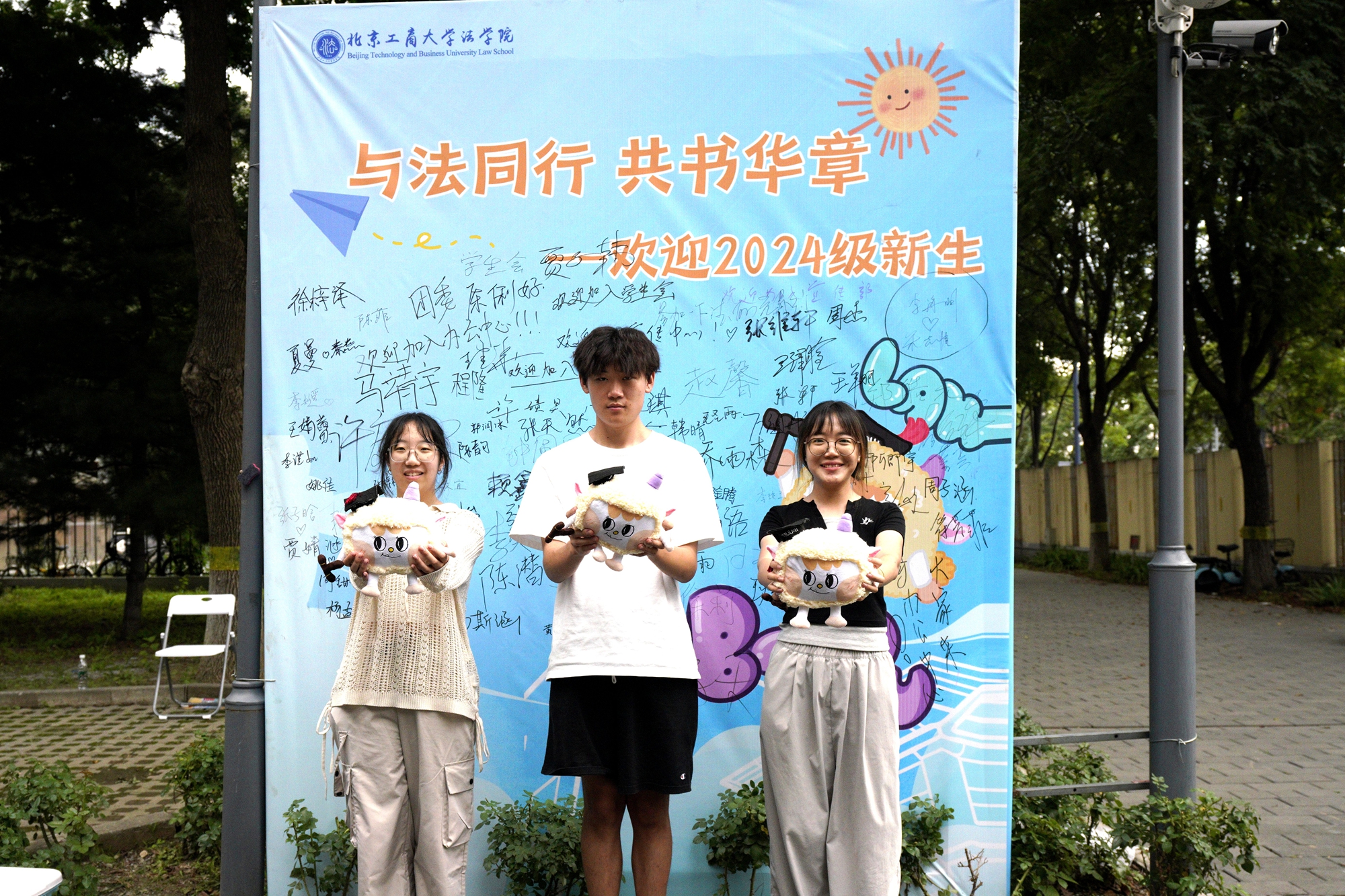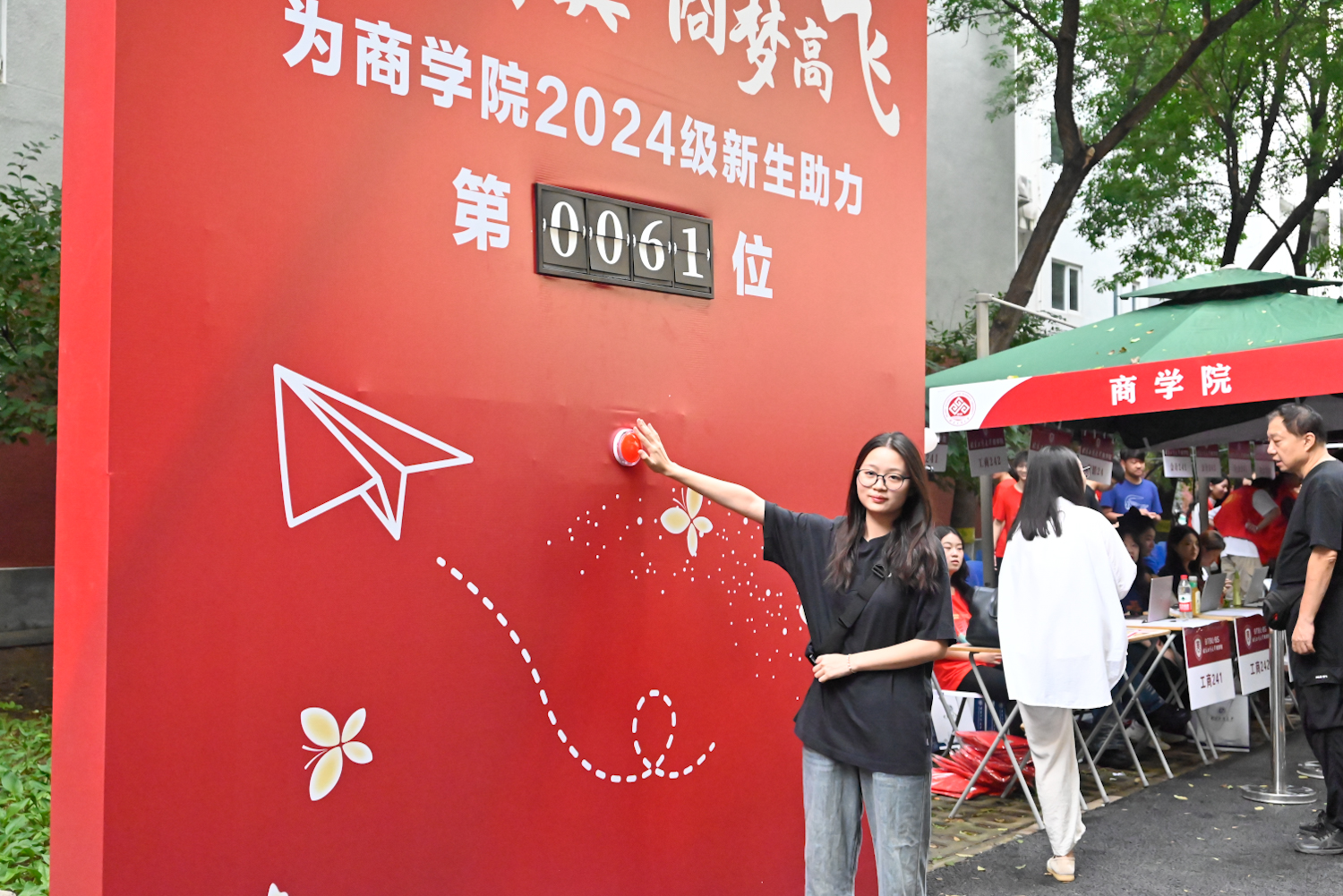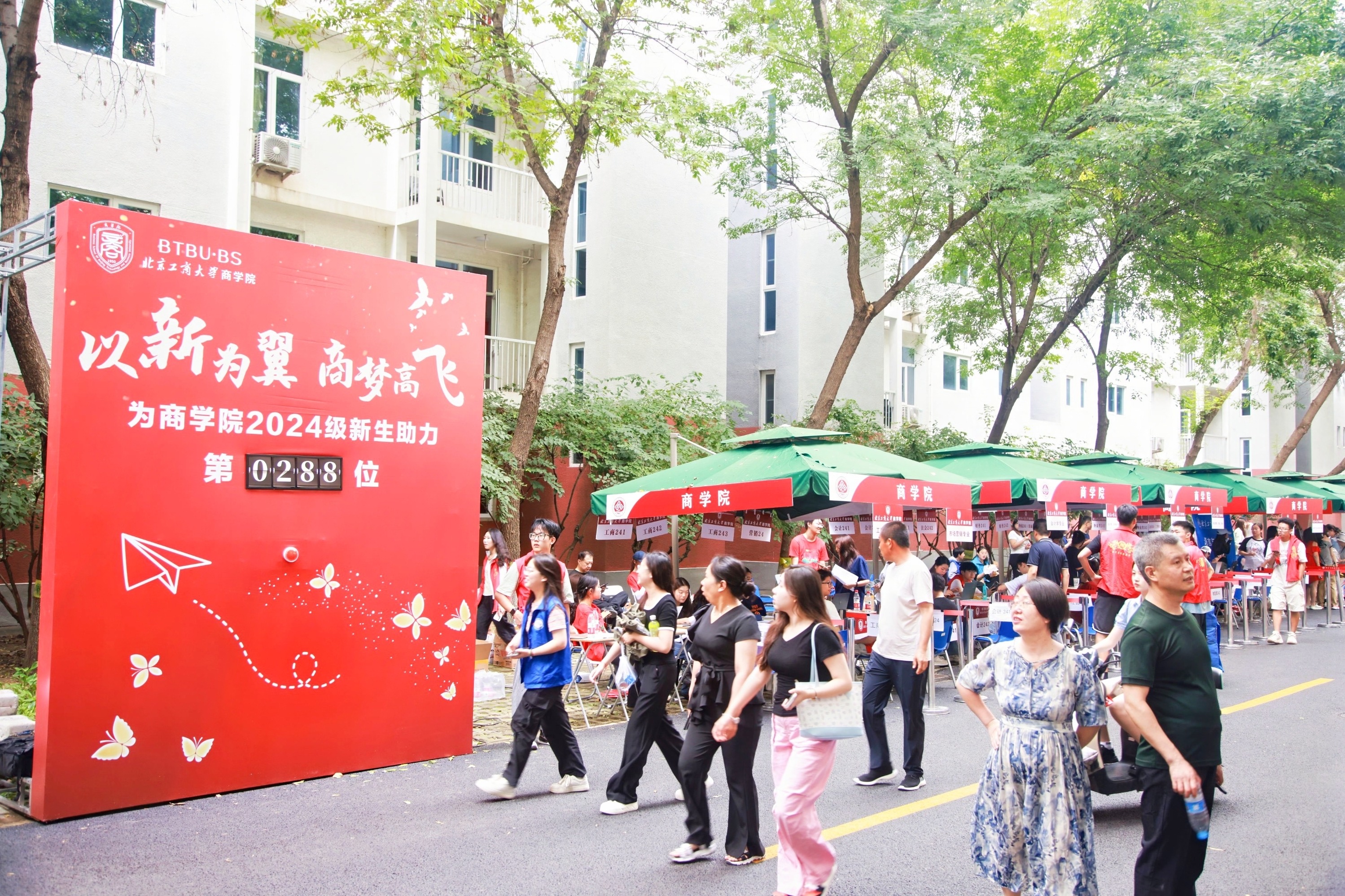 商學院設計布置了印有611名新生名字的“2024”創意簽名墻和個性報到拍照墻,這將成為他們大學生活的第一個獨特印記!商學院向每一名新生發放自主設計定制“商院紅”院服院徽,讓所有新生烙上北工商商院烙印。