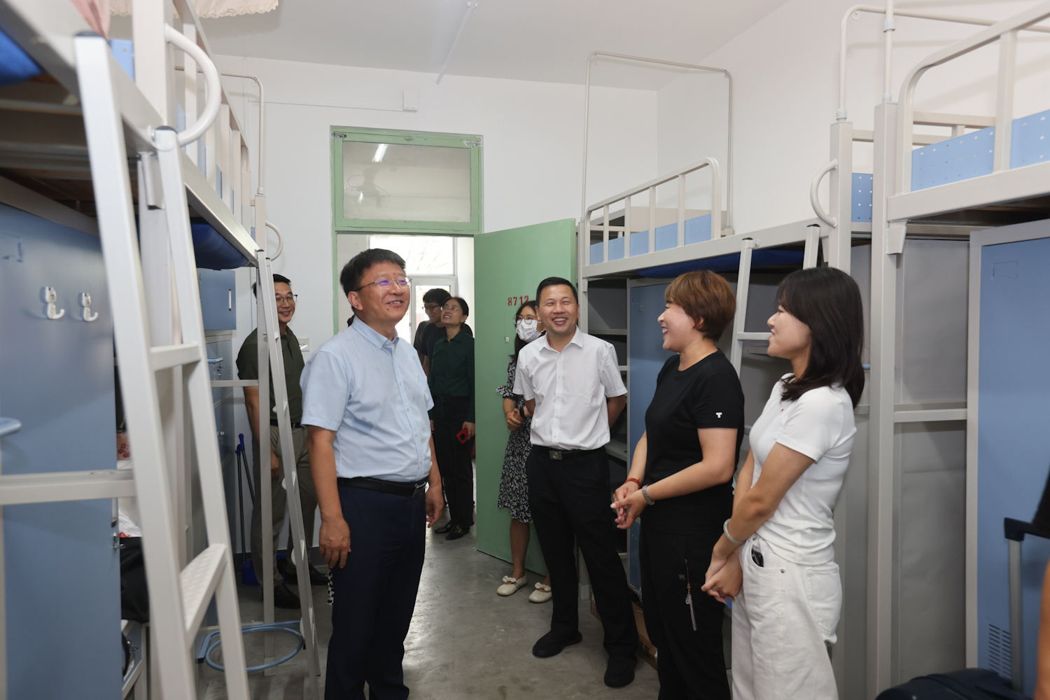 “你來自哪里?”“來的路上順利嗎?”“初來學校還適應嗎?”……走進新生宿舍,校領導們與同學們心貼心交流,并表示,學校將盡最大努力為同學們提供舒適暖心的學習環境,希望同學們樹立遠大志向,在北工商實現青春夢想。