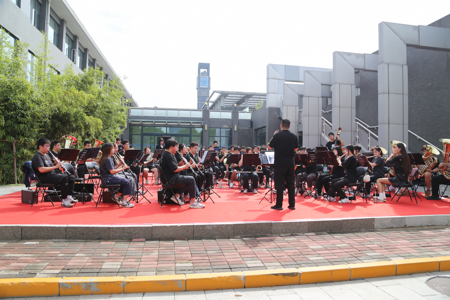 優美的音樂聲從熙熙攘攘的人群中傳來,學校管樂團40余名同學為新生們演奏《燈火里的中國》《青春之舞》等多首精彩曲目,用音符表達出對新生的熱切祝福,歡呼聲不絕于耳!