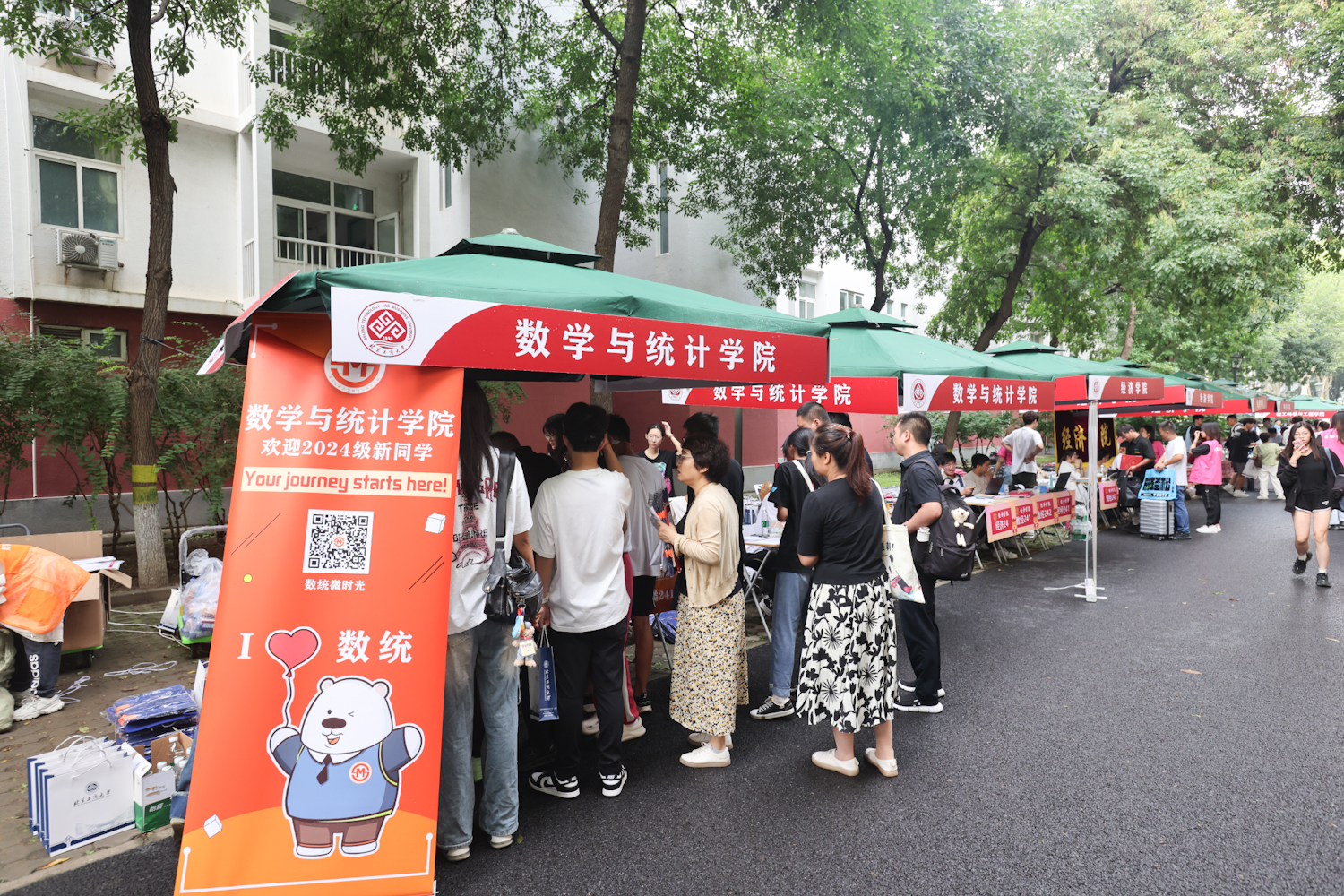 數學與統計學院提前半個月開始和學生骨干策劃迎新活動開展,制定迎新方案,現場布置打卡墻和各種溫馨打卡KT板。為每位新生準備文創手提包和T恤、數統院徽,充分展現了數統學子的青春朝氣和才藝風采。