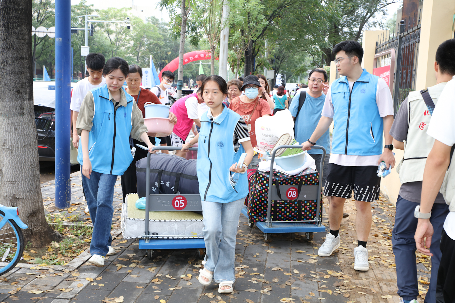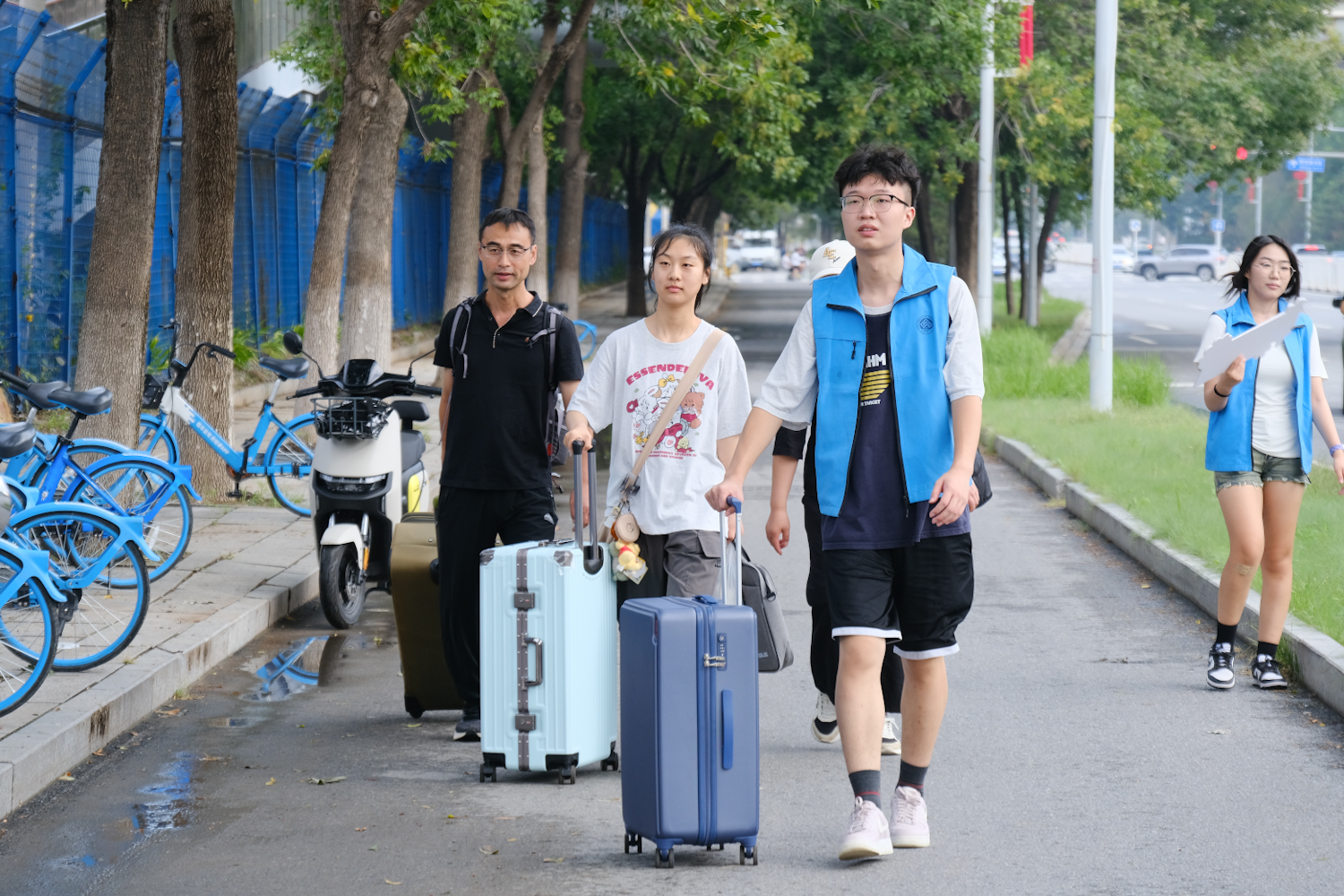 “同學你好,我幫你拿行李到擺渡車上”,“家長您好,可以到西區一二三層用餐”,從地鐵站到校園,從停車場到食堂,彩色的志愿者馬甲成為了校園里最靚麗的風景,以溫暖的笑容和真誠的幫助給予他們來自北工商的第一份溫暖與關懷。