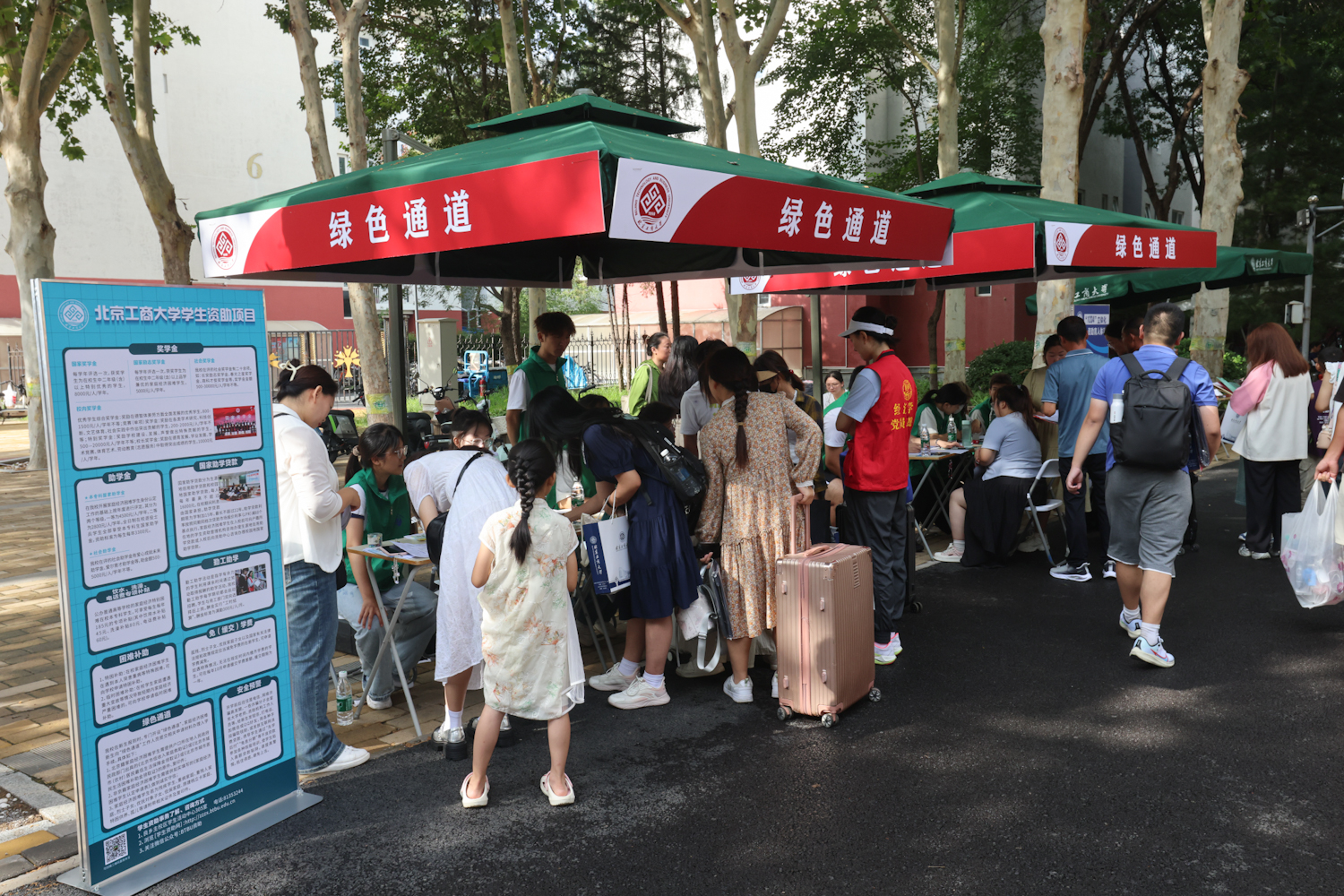 新生們或手挽父母、或并肩與好友而行,有的駐足于展板前,仔細瀏覽學校介紹與專業特色;有的興奮地拍照留戀,定格人生重要時刻……他們眼中閃爍著對未來大學生活的憧憬與期待。歡聲笑語與青春氣息交織,彌漫在北工商的校園中。