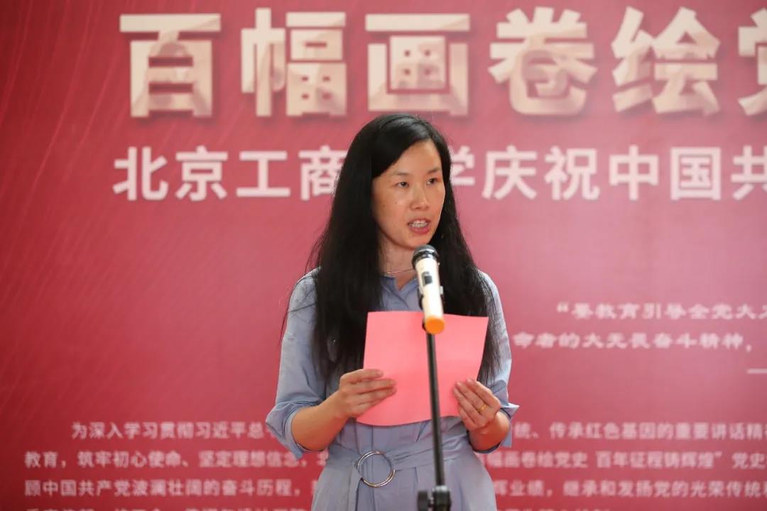 6月30日下午,由北京工商大學黨委宣傳部、校工會、傳媒與設計學院聯合主辦的“百幅畫卷繪黨史 百年征程鑄輝煌”北京工商大學慶祝中國共產黨成立100周年黨史學習教育主題展覽開展儀式在良鄉主校區舉行。校領導黃先開、王偉、李中奇、歐陽媛、張耘、鄭文紅出席儀式。學校2021年“兩優一先”受表彰集體和個人受邀作為首批參展教職工參加儀式。