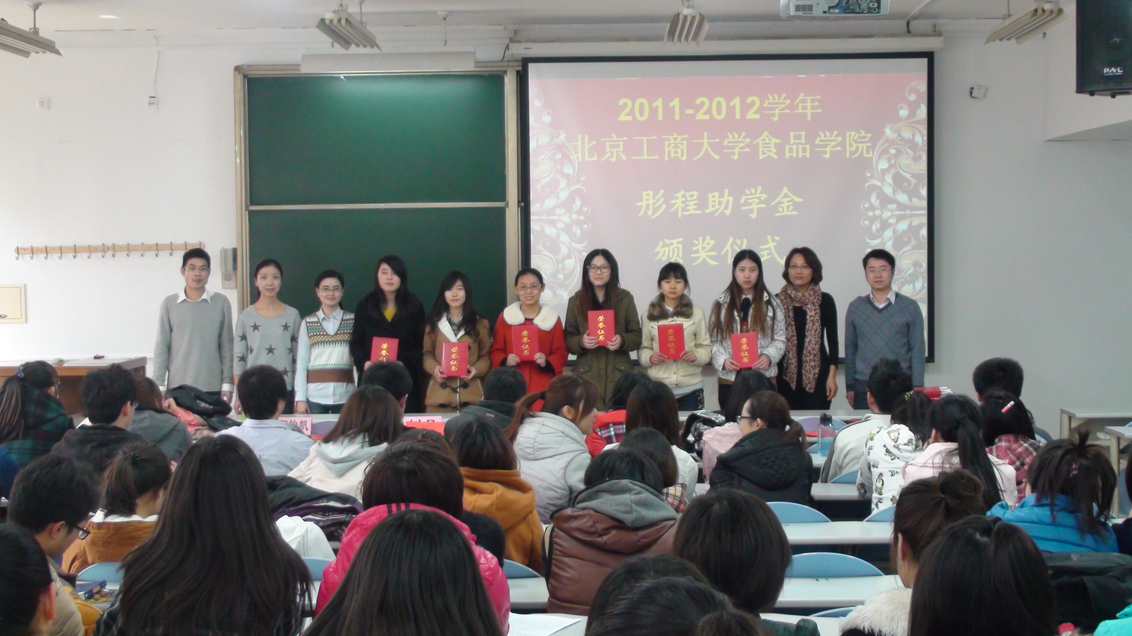 掛牌儀式結束后,“彤程助學金”、“彤程校友基金”頒獎儀式一并舉行。校友企業彤程集團以做“優秀的企業公民”作為自己立身的基礎,堅持用愛與責任回饋社會。2006年和2012年,該集團在我校先后設立“彤程助學金”和“彤程校友基金”,分別以每年10萬元和8萬元的標準資助我校品學兼優的學生,用于激勵和引導工商學子德、智、體、美全面發展,增進校友與母校間的聯系。2011-2012學年度共有125位表現突出、成績優秀的貧困生獲得“彤程助學金”,共有60名品學兼優的學生獲得“彤程校友基金”。