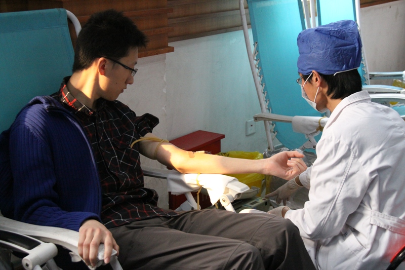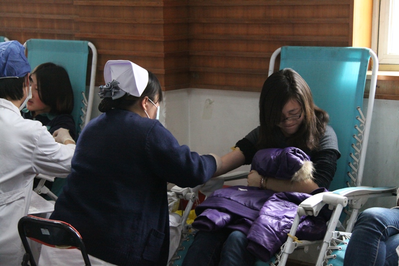 獻血過程中大家積極踴躍,但也有同學(xué)出現(xiàn)身體不適的狀況。鑒于此,校醫(yī)室劉美珍大夫提醒大家:”提前做好準備工作,獻血前不要劇烈運動,感冒、吃藥或生理期的同學(xué)最好不要參加獻血。另外,因為獻血是在上午進行,所以大家一定要吃早飯,但是最好不要吃過于油膩的食物。”