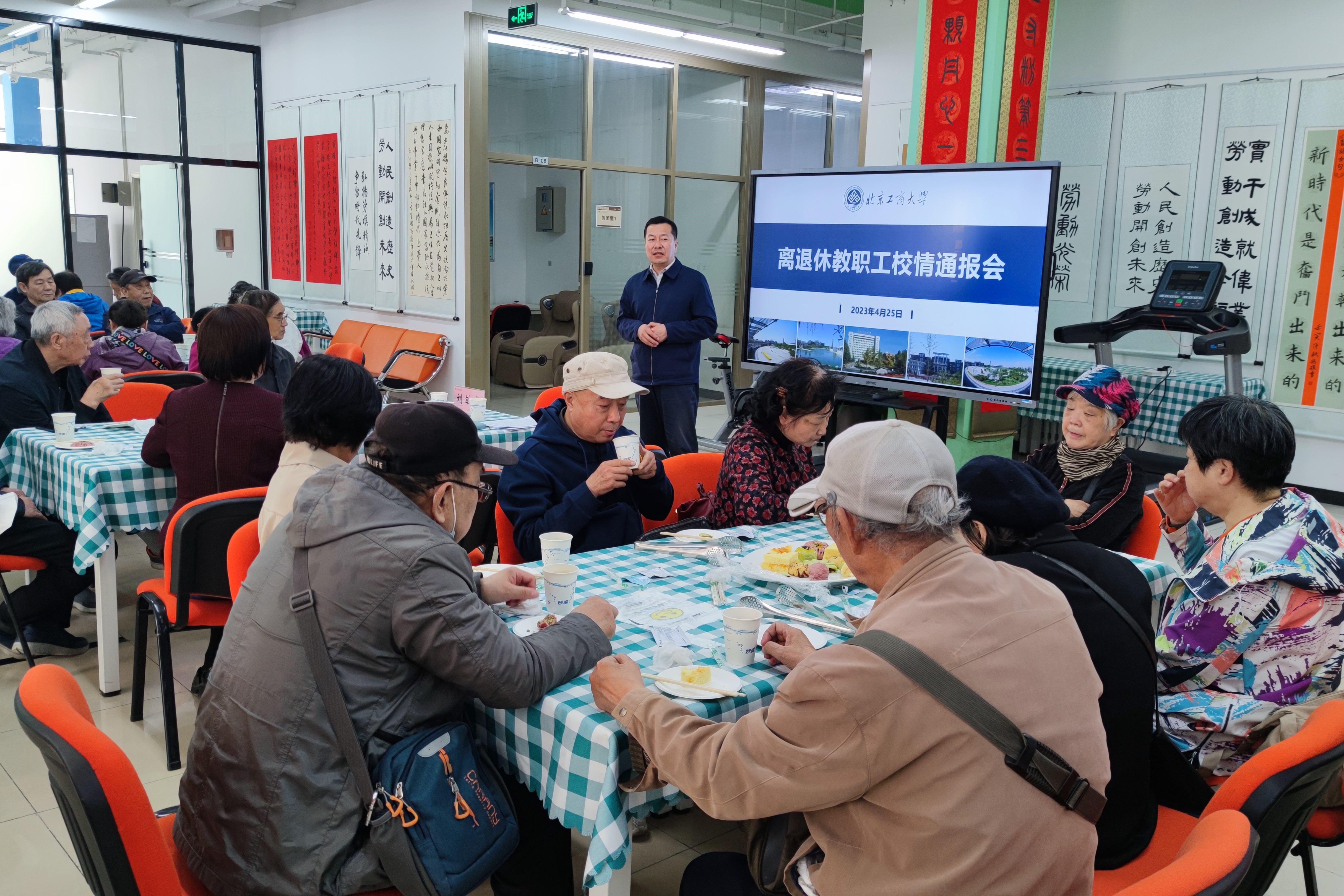 4月25日,學(xué)校在良鄉(xiāng)主校區(qū)召開2023年離退休教職工校情通報(bào)會(huì)。學(xué)校黨委常委、副校長(zhǎng)劉敏華出席會(huì)議并向老同志通報(bào)學(xué)校情況。離退休黨委、校院兩級(jí)關(guān)工委以及各黨支部、社團(tuán)等代表40余人參加會(huì)議。會(huì)議由離退休黨委書記楊巧明主持。
