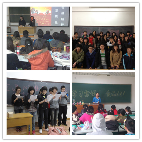 此外,食品學(xué)院為把“學(xué)雷鋒”活動(dòng)延展到每個(gè)同學(xué)的身邊,在3月份集中開(kāi)展了“學(xué)習(xí)雷鋒同志,弘揚(yáng)雷鋒精神”主題班會(huì)活動(dòng)。各班圍繞“學(xué)習(xí)雷鋒同志,弘揚(yáng)雷鋒精神”,開(kāi)展了形式多樣的主題活動(dòng)。有的班級(jí)舉辦了“團(tuán)支部學(xué)習(xí)雷鋒座談會(huì)”,暢談了各自對(duì)雷鋒精神的理解。有的學(xué)生認(rèn)為雷鋒精神一直我們身邊,“感動(dòng)中國(guó)人物”中19年獻(xiàn)血6萬(wàn)毫升的郭明義,靠賣(mài)羊肉串資助貧困學(xué)生的阿里木等等,都是雷鋒精神在新時(shí)代的具體體現(xiàn),是大家學(xué)習(xí)的榜樣。有的學(xué)生則表達(dá)了自己對(duì)雷鋒同志的敬仰和欽佩之情。大家還談到了班級(jí)內(nèi)部的好人好事,學(xué)生們紛紛表示要向他們學(xué)習(xí),使更多的“學(xué)雷鋒標(biāo)兵”閃閃發(fā)光;有的團(tuán)支部圍繞此次活動(dòng)主題,開(kāi)展了征文或知識(shí)競(jìng)賽等活動(dòng)。通過(guò)開(kāi)展形式各樣的活動(dòng),加強(qiáng)了學(xué)生們對(duì)雷鋒精神的理解,使大家對(duì)雷鋒同志的生平事跡得到了更深的認(rèn)識(shí)。