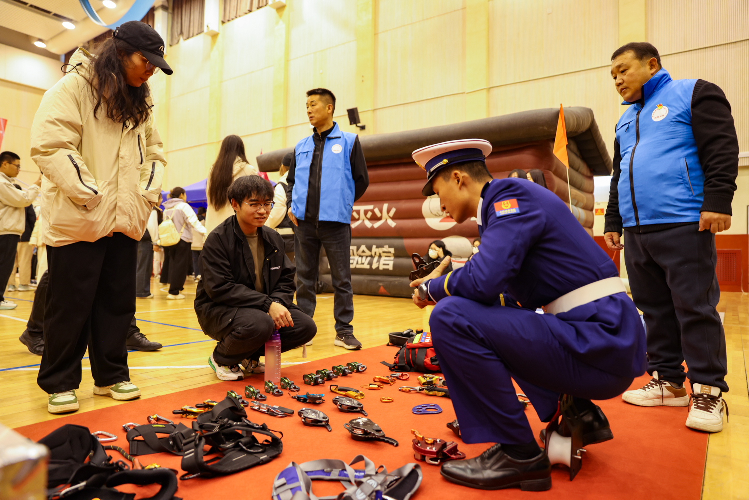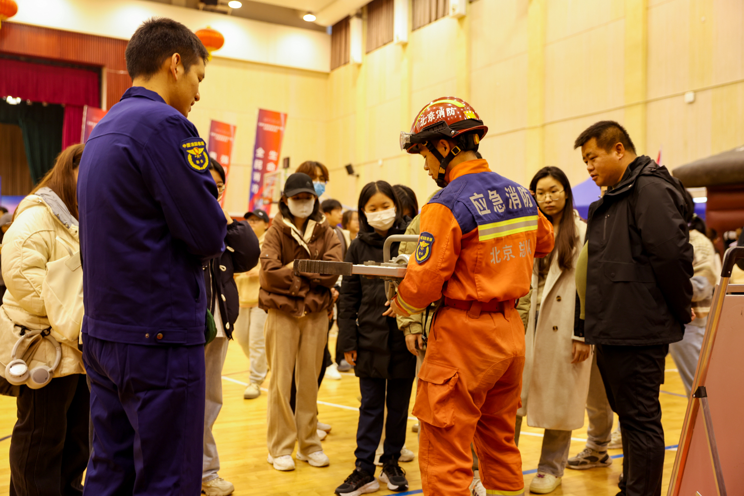 此外,房山區消防救援局和電動自行車領域專家為大家科普了電動自行車起火原因、撲救方法和日常預防措施,并現場解答了師生們關心的消防安全問題。會場內設置了消防器材展示、煙熱逃生帳篷、模擬滅火屋、火災隱患排查體驗屋等多個項目,在現場消防宣傳員的引導和講解下,參會師生現場進行了沉浸式體驗,通過親身感受和實操,不僅讓師生對如何發現消除身邊火災隱患有了直觀了解,也有效提升了廣大師生應對突發火情時妥善處置和安全逃生的技能水平,得到了大家一直好評。活動最后,參會師生共同在“消防安全進校園”簽名墻上簽名,留下了共同筑牢校園消防安全防線的鄭重承諾。