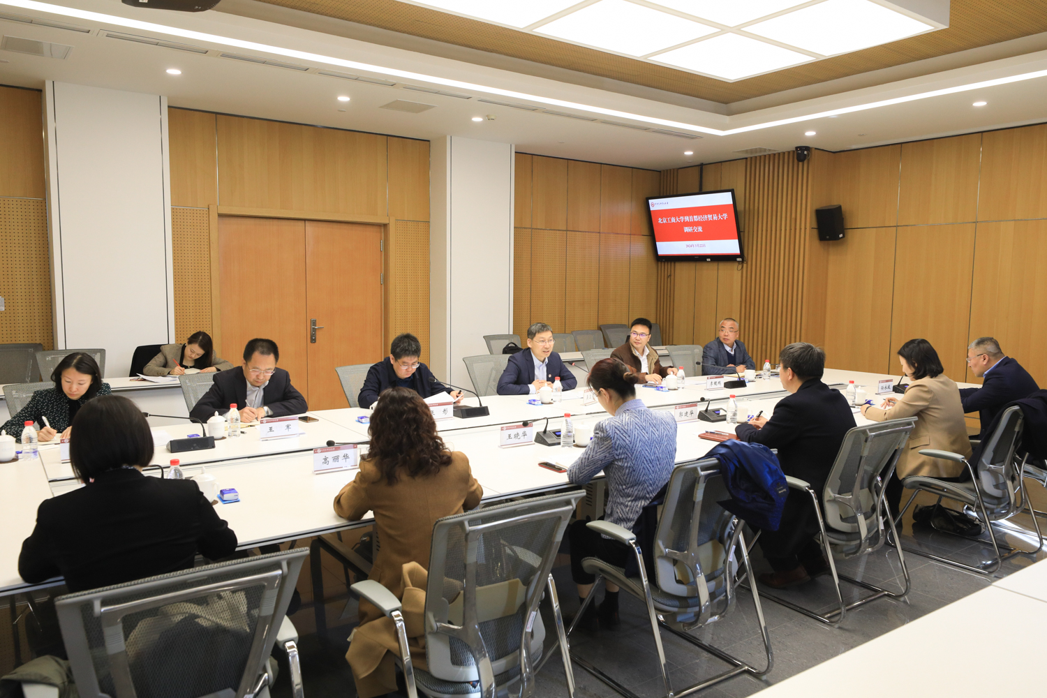 郭建華對首都經濟貿易大學的熱情接待表示感謝,并表示首都經濟貿易大學文化底蘊深厚,秉承“崇德尚能,經世濟民”的校訓精神,在“駱駝精神”的指引下,為國家和北京市培養了一批活躍在政府部門、教育界、學術界和金融、財稅、會計等行業的優秀人才,此次調研收益良多。他介紹了學?;厩闆r,表示學校致力于建設特色鮮明的高水平研究型大學,全校一盤棋統籌推進“雙一流”學科創建工作,堅持以轉型融合促提升,著力推進數字化轉型,積極探索實施商科與工科主動對接、深度融合、一體發展的方法和路徑,不斷推動學校內涵式高質量發展。希望兩校加強溝通協作、互通有無、相互扶持,通過此次交流尋求相互提升的契合點,加強合作,共同進步,為首都經濟社會發展貢獻市屬高校力量。