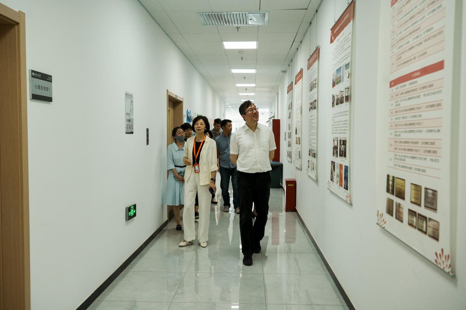 匯報會后,市教委領導和專家組一行在學校相關部門負責人的陪同下實地考察了良鄉主校區文二樓智慧教室、圖書館、學生活動中心、學生食堂和宿舍。
