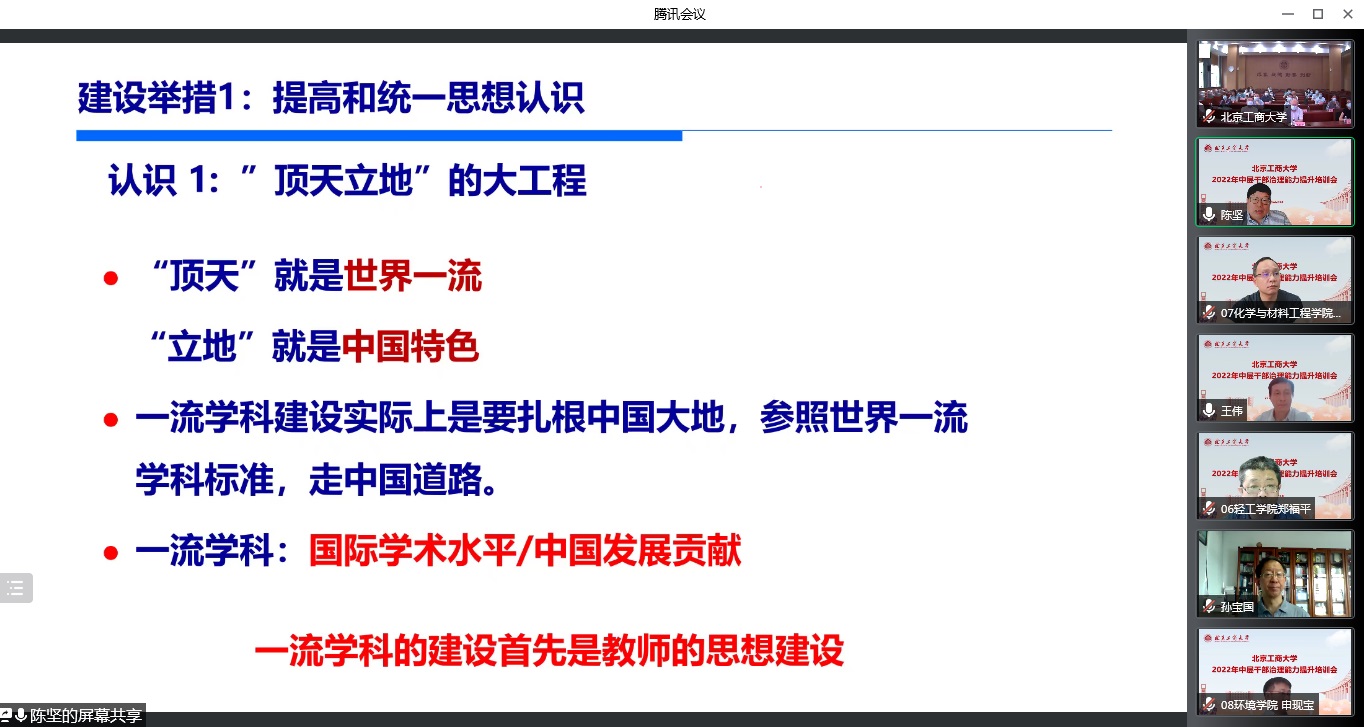 6月8日,學校舉辦2022年干部治理能力提升系列培訓第三講、黨委理論學習中心組(擴大)會,邀請到中國工程院院士、江南大學原校長陳堅教授分享學科建設和科技管理的經驗做法。校領導、全體中層干部參會。會議由學校黨委副書記王偉主持。