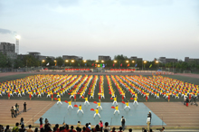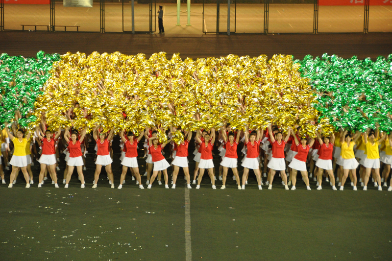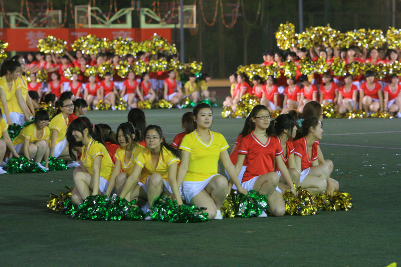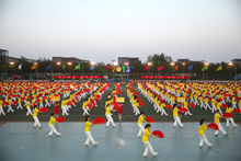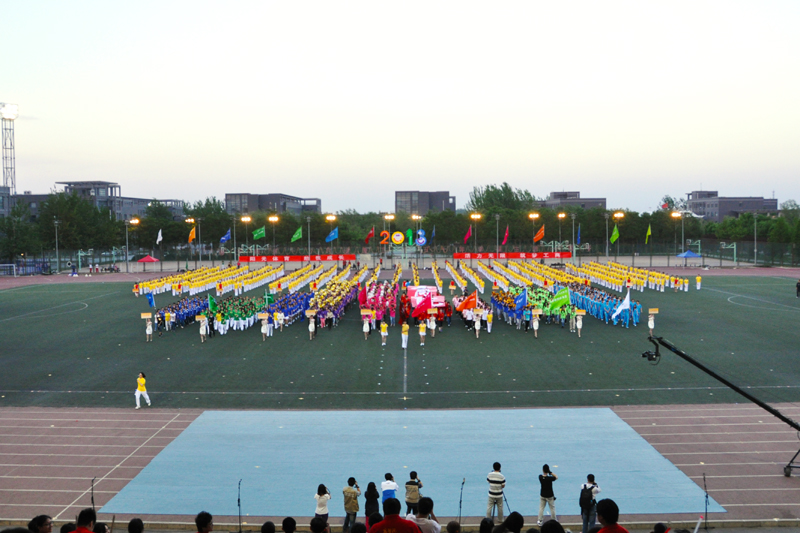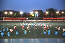 青春的節奏,讓朝氣蓬勃的大學生伴隨著樂聲在運動場上綻放出最美的年華。來自商學院、經濟學院、藝術與傳媒學院、計信學院以及材機學院的1008名大一女生踏著歡快的啦啦操歌曲驚現“舞臺”。她們身著紅色和黃色制服,高舉手花,用各式各樣的隊形淋漓盡致地展現著“巾幗不讓須眉”的氣魄。長久的期盼在此刻化作了自信的笑容洋溢在每一位同學的臉上,她們用年輕人的青春蓬勃繪出了一幅又一幅壯美的畫卷:“小飛機”、“2013”、“花團錦簇”不斷地展現在觀眾的視野中。指導教師王立紅說,團體操的訓練讓同學們都參與到了體育鍛煉中,看到大家這樣辛苦訓練的成果在此刻展現,我們真正做到了為自己加油。