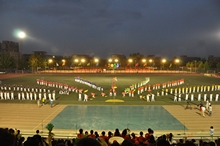 黨委書記孫堯東致開幕辭。他衷心感謝參加開幕式表演的北京體育大學師生、武警七支隊官兵和我校的師生員工們。他指出,剛剛過去的近2個月,學校舉辦了以“陽光 活力”為主題的體育文化節,共有5000名師生員工參與到9類項目的比賽和一系列活動中。今晚即將舉辦的運動會開幕式,既是體育文化節的圓滿落幕,也是2013年運動會的盛大開幕。在廣大師生員工的積極參與下,學校已經形成了每年舉辦兩次較大型運動會的傳統,目的就是要激發師生員工參加體育鍛煉的熱情,推動奮發向上的校園文化建設。他代表學校黨委衷心希望全校師生員工,始終追求真理和學術成就,堅守高尚的道德情操,堅持健康的生活方式,養成鍛煉體魄、愉悅身心的良好習慣,為實現中華民族的復興夢、強校夢和個人的幸福夢而不懈奮斗。